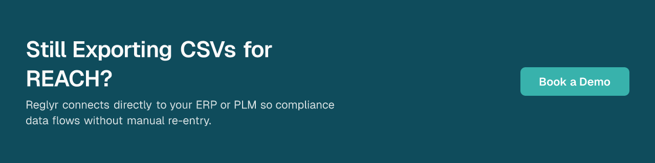 And if you want REACH compliance built as a true data pipeline — where BoM data flows in automatically from your PLM or ERP, compliance verdicts flow back out, and the entire process runs without manual re-entry at any step — Reglyr's architecture is designed specifically for that outcome.